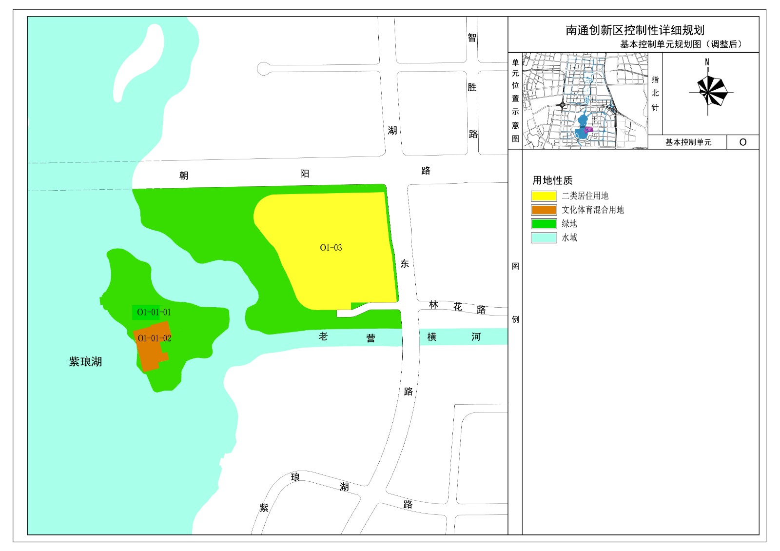 1、将O1-01地块部分绿地调整为文化体育混合用地,调整后的文化体育混合用地控制指标为:容积率≤1.0,建筑密度≤55%,绿地率≥20%,建筑高度≤15米。