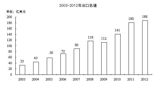 全年进出口总值263.0亿美元,增长2.0%。其中,出口总值187.9亿美元,增长4.3%;进口总值75.2亿美元,下降3.2%。年末与我市建立进出口贸易关系的国家和地区197个,全市有进出口业绩的企业4357家,增加6.6%。